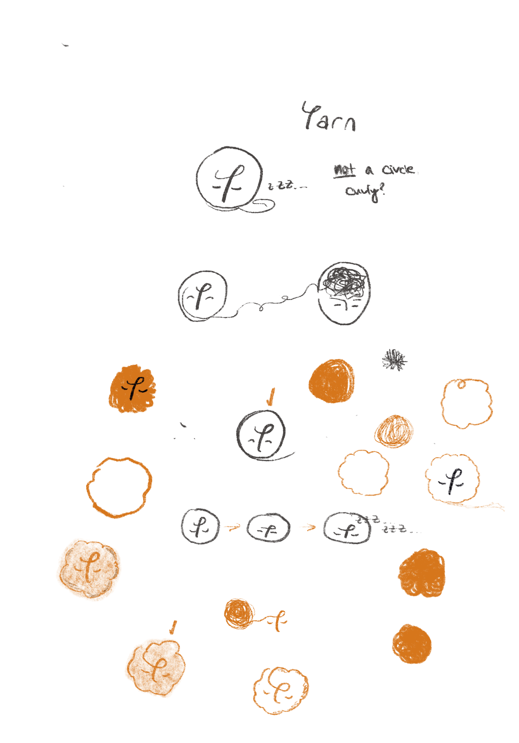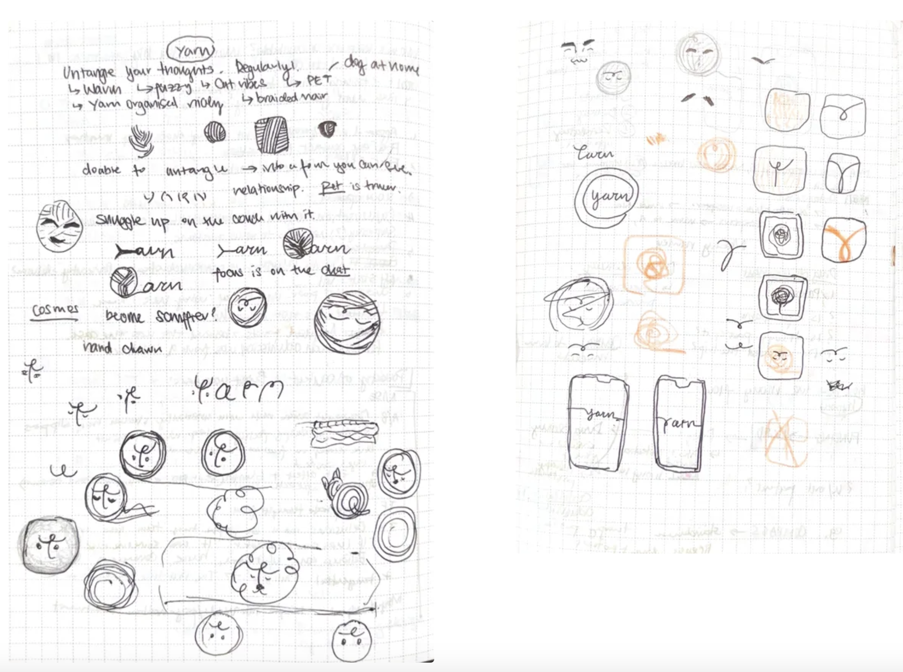 The concept for yarn was that it 'untangles your thoughts' into a more cohesive 'yarn' ball - seeing this as the main culprit for many of the times we turn to our phones. We wanted the character to be simple and hand-drawn, as well as naturally warm and inviting.